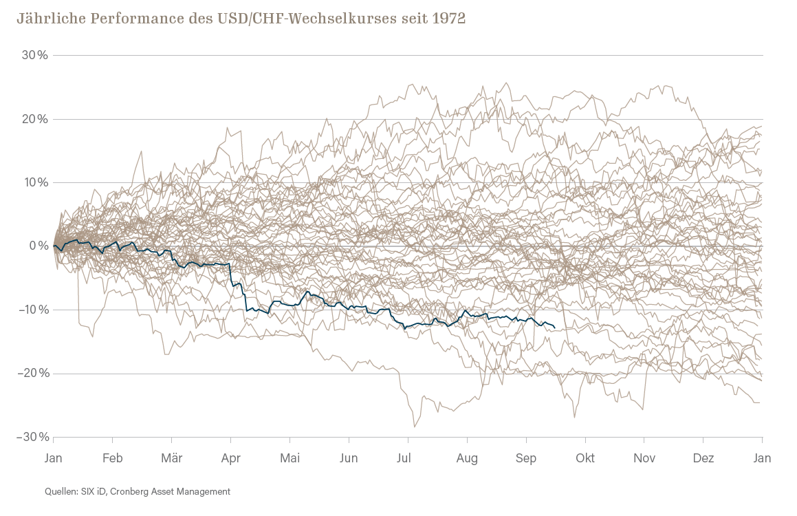 Kurzfristig wirken Währungsverluste wie ein Dämpfer. Doch Währungen können sehr rasch ihre Richtung ändern. So verlor der Greenback nach dem Ende des Bretton-Woods-Systems massiv an Wert: Der USD/CHF-Kurs, der in den 1960er-Jahren noch fest über 4.30 lag, fiel in der Folge bis Ende der 1970er-Jahre zeitweise auf unter 1.50. Erst die drastischen Zinserhöhungen der US-Notenbank unter Paul Volcker Anfang der 1980er-Jahre brachten die Wende und leiteten eine kräftige Erholung ein. Ähnliches zeigte sich in späteren Episoden wie nach dem Plaza Accord 1985 oder während der Dotcom-Krise: Nach starken Rücksetzern kam es über die Zeit stets zu Phasen einer Erstarkung. Langfristig entscheidend bleibt die wirtschaftliche Entwicklung: Solange Schulden produktiv eingesetzt werden und Wachstum generieren, bleibt das Vertrauen in den Dollar bestehen. Die Voraussetzungen für eine positive Entwicklung sind durchaus gegeben.