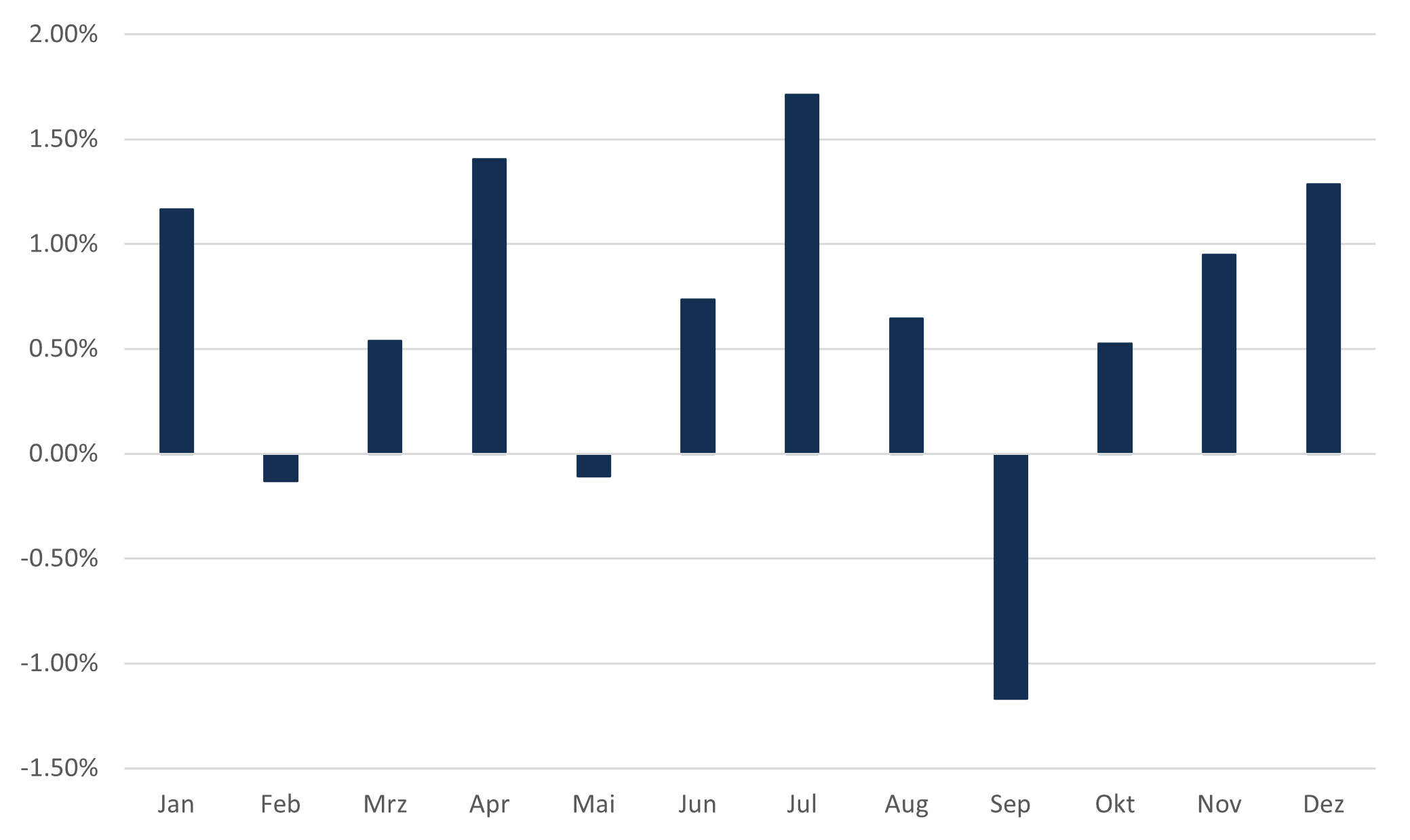 Durchschnittliche Monatsperformance des amerikanischen Aktienindex S&P 500 seit 1928