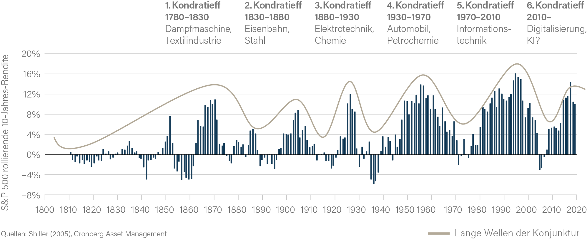Ob es den Unternehmen wirklich gelingt, die neuen Technologien wertschöpfend in ihr Geschäftsmodell zu integrieren, wird sich mittel- bis langfristig zeigen. Klar ist: In der Vergangenheit waren es immer wie der wenige, aber markante strukturelle Entwicklungen in Form von Basisinnovationen, die für einen substanziellen Schub in der Produktivität und im Wohlstand entscheidend waren. Dazu gehörten die Erfindung der Dampfmaschine, die Einführung der Eisenbahn, die Elektrifizierung, der Aufstieg der Petrochemie oder der Durchbruch in der Informationstechnologie. In seinem Aufsatz «Die langen Wellen der Konjunktur» zeigte der russische Ökonom Nikolai Kondratieff auf, dass es zwei Arten von Wirtschaftszyklen gibt: mittelfristige Angebots- und Nachfrageschwankungen sowie sehr lange Konjunkturwellen, die zwischen 40 und 60 Jahre dauern können. Als Ursache identifizierte er Paradigmenwechsel in der Wirtschaft, die durch bedeutende technologische Innovationen ausgelöst wurden. Heute werden fünf Kondratieff-Zyklen unterschieden, die genau obengenannten Basisinnovationen zugeordnet werden. Stehen wir mit KI nun am Beginn eines sechsten langen Zyklus? Nun, eine bedeutende technologische Innovation muss disruptiv sein, branchenübergreifend wirken und eine breite gesellschaftliche Akzeptanz aufweisen. KI erfüllt diese Kriterien. Sie verändert Geschäftsmodelle, steigert die Effizienz, senkt Kosten und ermöglicht vor allem innovative Produkte und Dienstleistungen. Die Chancen stehen gut, dass KI dem gesamtwirtschaftlichen Wachstum in den kommenden Jahren einen deutlichen Produktivitätsschub verleiht. Dies wiederum dürfte die Aktienmärkte positiv unterstützen. So lösten Basisinnovationen in der Vergangenheit nicht nur höheres Wirtschaftswachstum aus, sondern auch eine positive Börsenentwicklung – getrieben durch Unternehmen, die es verstanden, die strukturellen Entwicklungen frühzeitig zu erfassen und in ihr eigenes Geschäftsmodell zu integrieren. Doch nicht alle Unternehmen werden in diesem Veränderungsprozess erfolgreich sein. Das zeigt ein Blick zurück in die Jahre um die Jahrtausendwende während der Dotcom-Blase, als die Erwartungen an den breiten Einsatz des Internets die Kurse der Technologieunternehmen stark in die Höhe trieben. Cisco galt damals mit seinen Routern als Wegbereiter des Internets und verfügte auf dem Höhepunkt der Blase über die höchste Marktkapitalisierung. Allerdings schaffte es das damalige Vorzeigeunternehmen nicht, sich dauerhaft an der Spitze zu halten, und musste einen erheblichen Kurseinbruch hinnehmen. Auf der anderen Seite konnte sich Amazon zwar dem Platzen der Dotcom-Blase auch nicht entziehen, entwickelte sich aber über die Zeit kontinuierlich vom Online-Buchhändler zu einem der heute wertvollsten Hightech-Unternehmen – nicht zuletzt dank eines innovativen und vorausschauenden Geschäftsmodells, das technologische Entwicklungen intelligent ins Geschäftsmodell stets miteinbezog.